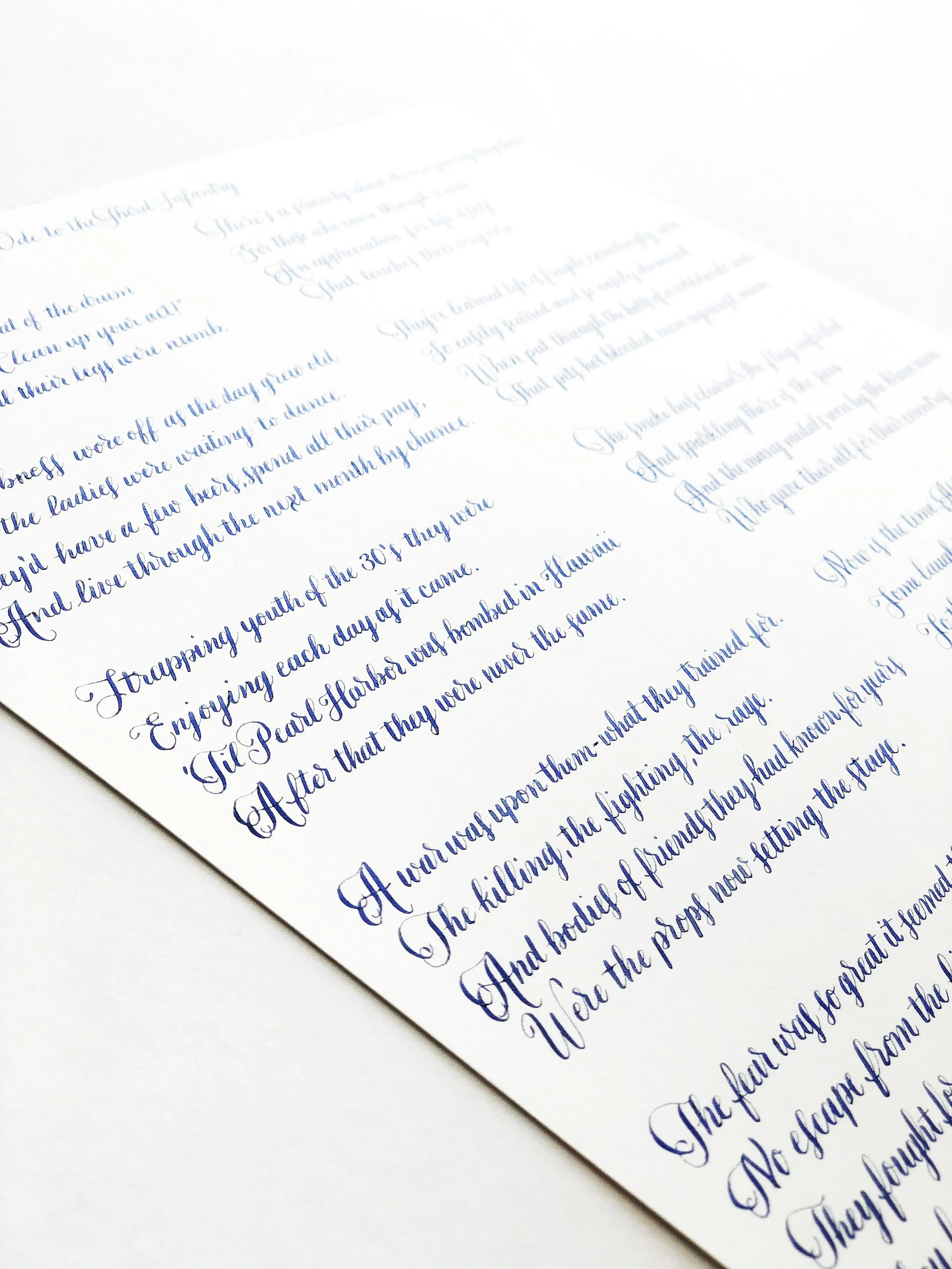 There are a lot of calligraphy styles and projects I do! From pointed pen to digital calligraphy and everything in between, XO Art & Design can create the perfect piece for you.